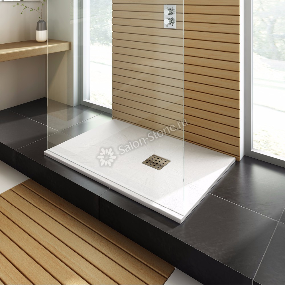 Душевые поддоны из искусственного камня обладают рядом преимуществ: Долговечность и прочность материала; Отсутствие пор, что обеспечивает гигиеничность и удобство в уходе; Широкий выбор дизайнов и цветов; Приятные тактильные ощущения; Устойчивость к механическим повреждениям и ультрафиолету.